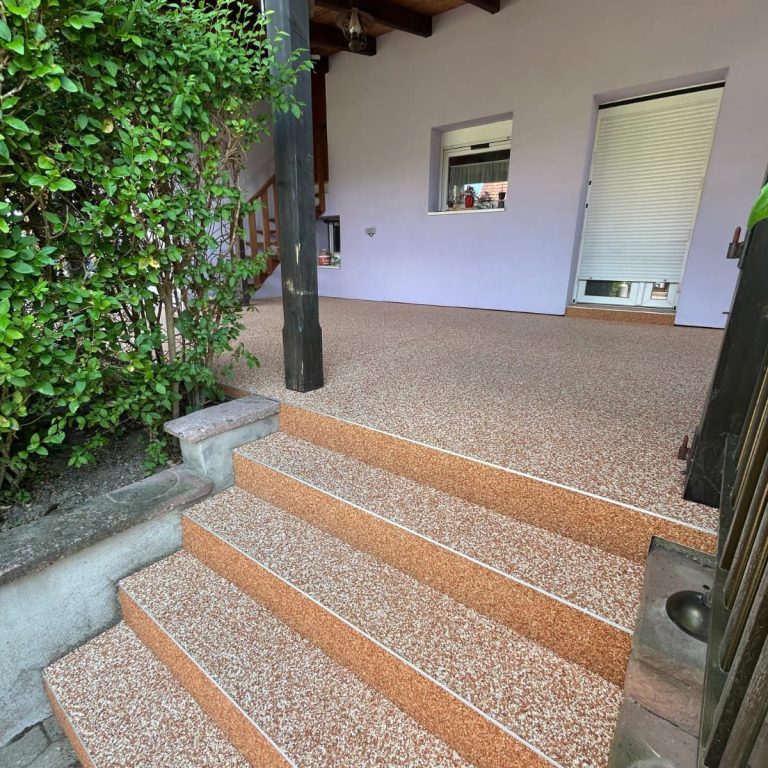 Nous réalisons des sols en granulats de marbre encore appelé moquette de pierre, alliant esthétique, durabilité et facilité d’entretien.