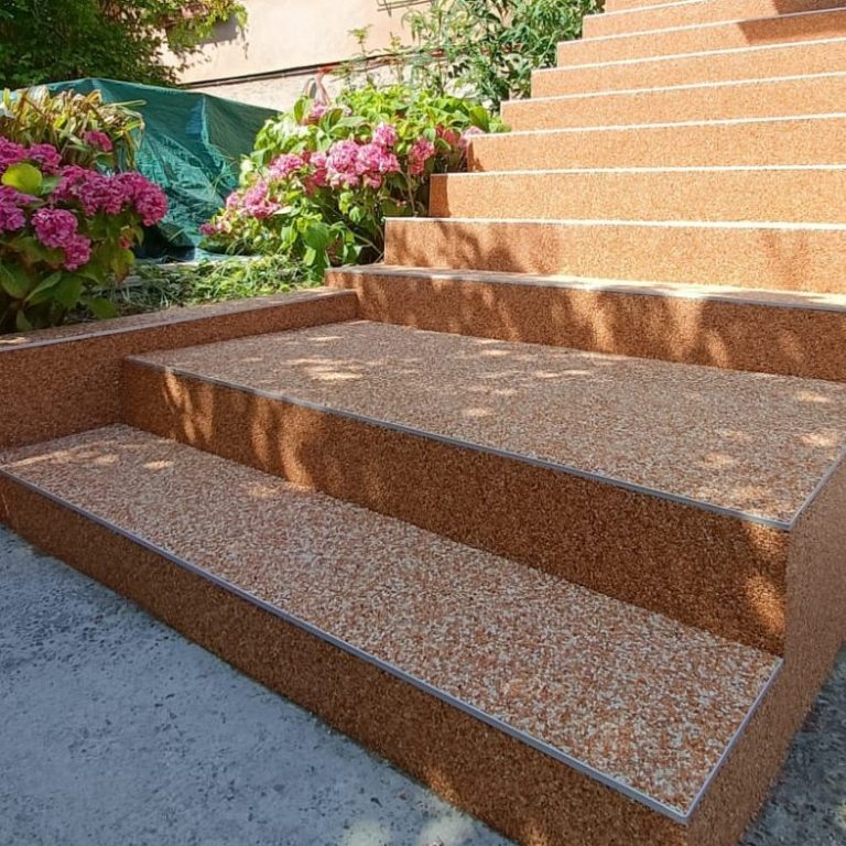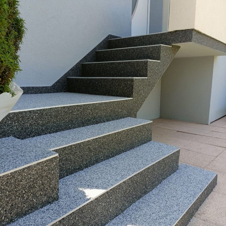 Le revêtement en granulats de marbre liés à la résine, aussi appelé moquette de pierre, est une solution idéale pour vos aménagements extérieurs en Alsace : terrasses, plages de piscine, allées et escaliers.